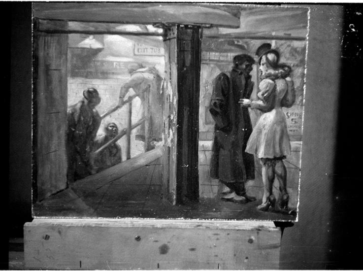 [Signed painting of a waterfront scene by Reginald Marsh.]