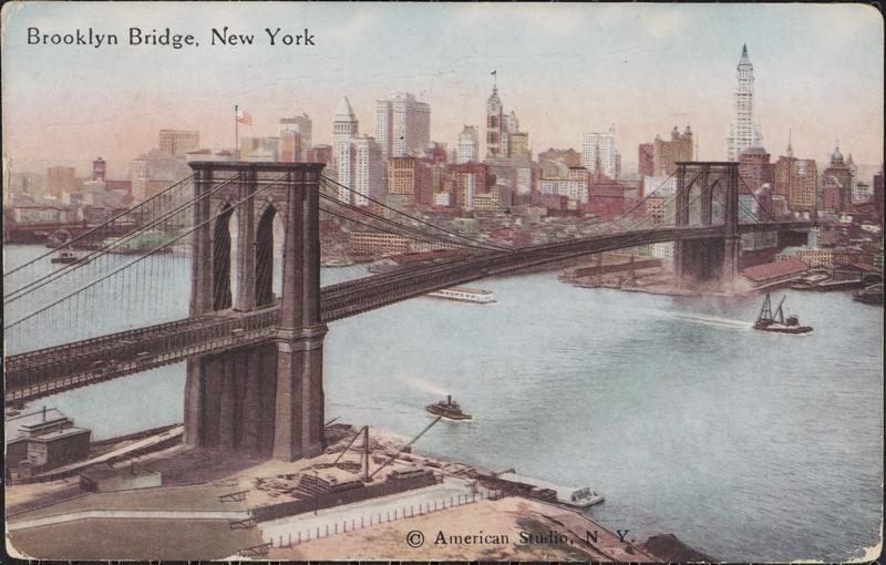 Woolworth and Municipal Bldgs. from Brooklyn Bridge, New York.