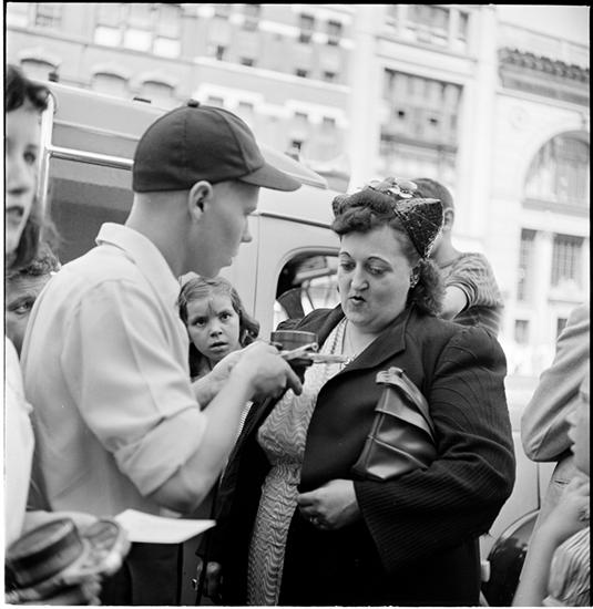 Teenage Radio Show [Teenage boy interviewing a woman and child.]
