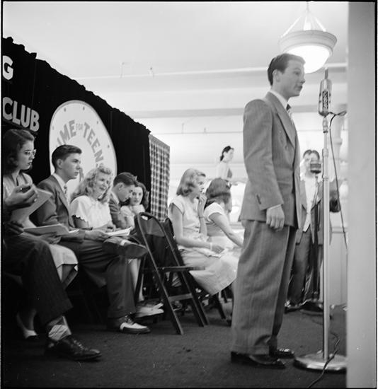 Teenage Radio Show [Woman speaking in front of an audience.]