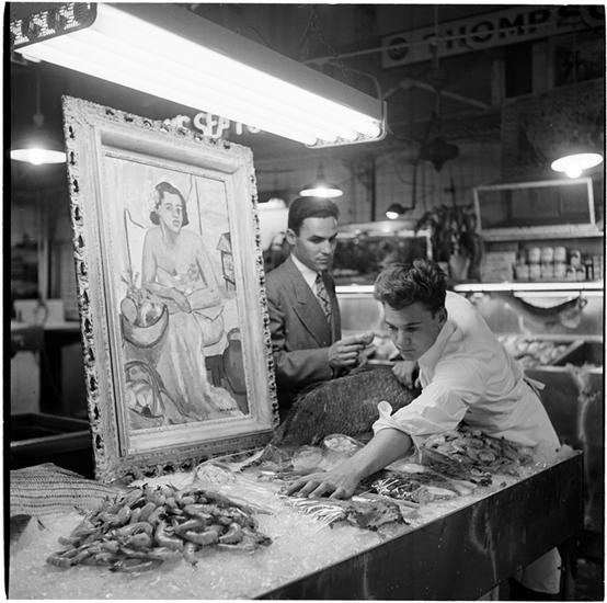 Art in the Marketplace [Painting in a seafood vendor's stand.]
