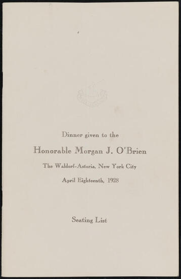 Seating List. Dinner in Honor of the British and French War Commissions Given by the Mayor of the City of New York