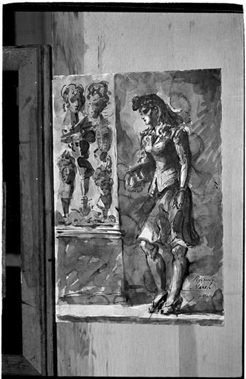 [Signed painting of a woman window shopping by Reginald Marsh.]