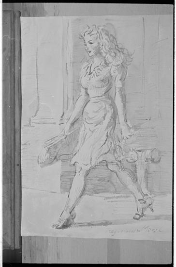 [Signed artwork of a woman walking down the street by Reginald Marsh.]