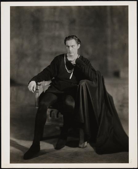 [John Barrymore in the title role, E. J. Ballantine as Marcellus and Frederick Lewis as Horatio in "Hamlet".]
