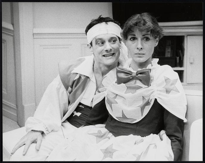[Peter Michael Goetz as John (Jack) Barrymore and John Vickery as Edward (Ned) Sheldon in "Ned and Jack".]