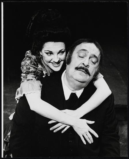 [Zero Mostel and Fionnuala Flanagan in "Ulysses in Nighttown".]