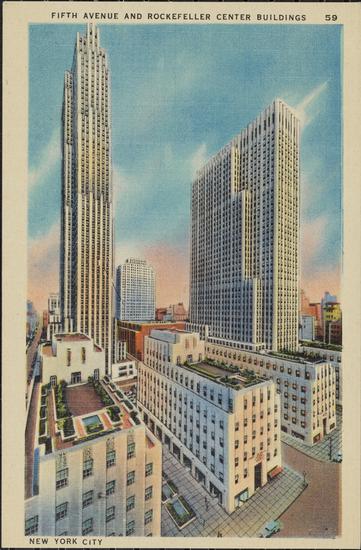Rockefeller Center [GE Building]. View from roof of Saks Fifth Avenue looking west