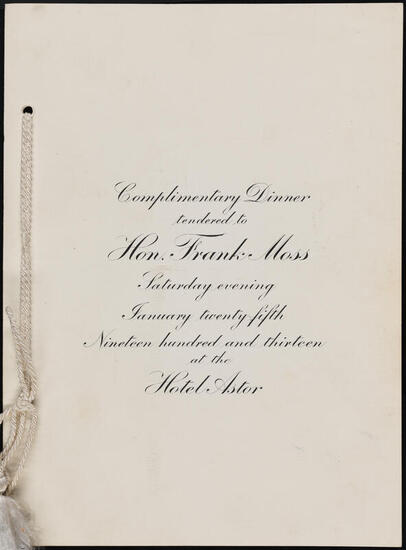 Complimentary Dinner tendered to the General Officers and Flag Officers in the Vicinity of New York