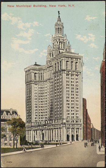 Municipal Building, Newspaper Row and City Hall Park, New York.