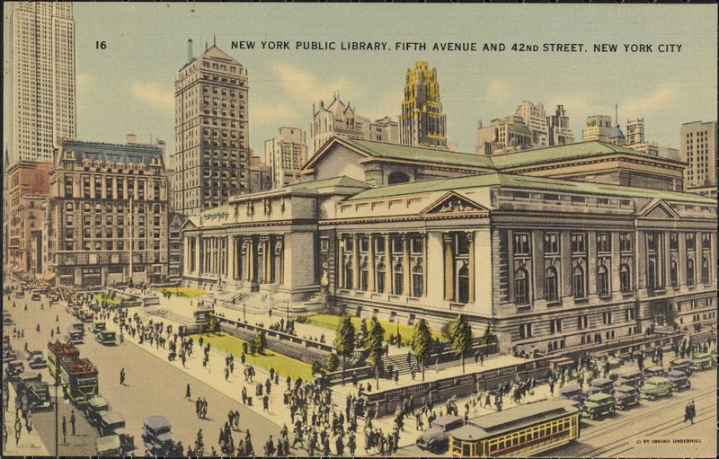 [New York Public Library, 42nd Street and Fifth Avenue.]