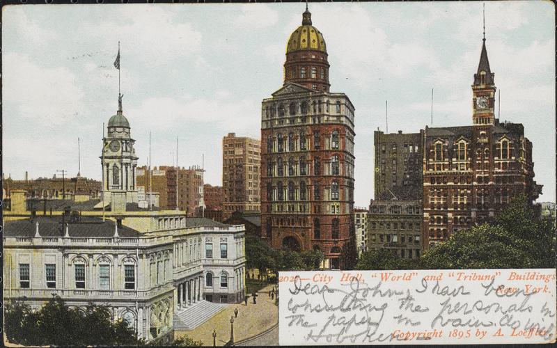 City Hall, "World" and "Tribune" Buildings, New York.
