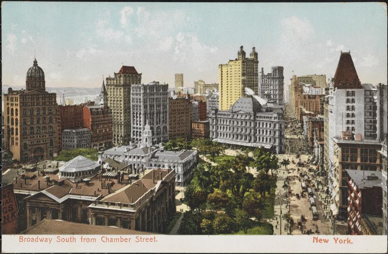Bird's - eye view of Broadway & City Hall Park (South of Chambers St.)