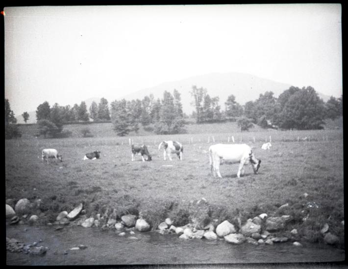 [Reginald and Felicia Marsh, unidentified people, and cows in pasture.]