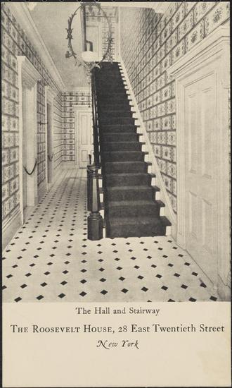 The Hall and Stairway, The Roosevelt House, 28 East Twentieth Street, New York.