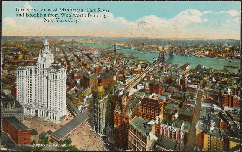 Bird's Eye View of Manhattan, East River and Brooklyn from Woolworth Building.