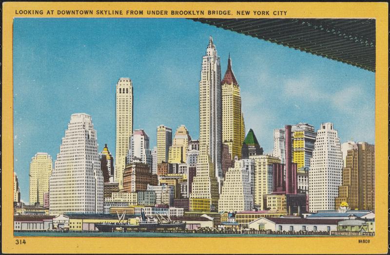 [New York Skyline and Brooklyn Bridge from Brooklyn.]