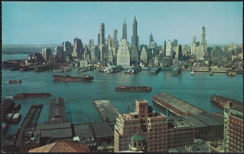 Looking at Downtown Skyline from Under Brooklyn Bridge, New York City