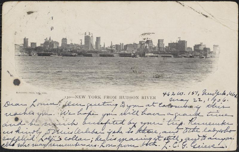 Skyline of Downtown New York as seen from Hudson River at Night.