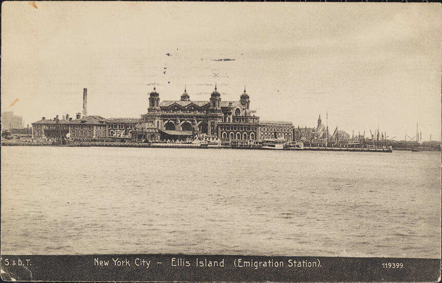 U.S. Immigration Station, Ellis Island, New York. Aliens Entering Buildings for Examination.