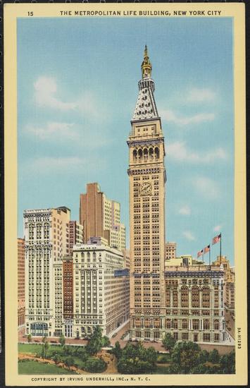Metropolitan Life Insurance Building. Madison Square, New York City. 48 Stories; 658 Ft Tallest in the World.