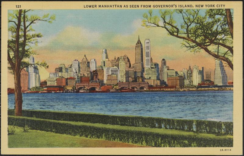 [View of Lower Manhattan and Governors Island from New York Harbor.]