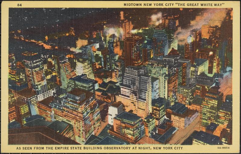 Midtown New York City, "The Great White Way," as Seen from the Empire State Building Observatory at Night.