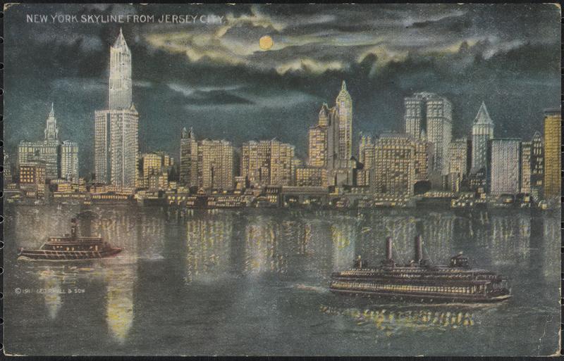 Panorama of Lower Manhattan and Bay from top of Woolworth Building, New York City.