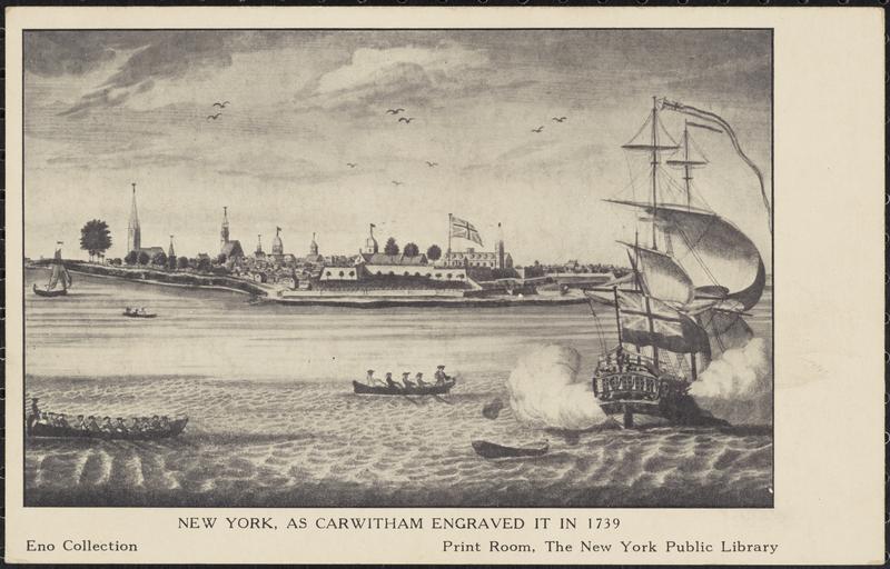 A South East Prospect of the City of New York in 1756-7 with the French Prizes at Anchor