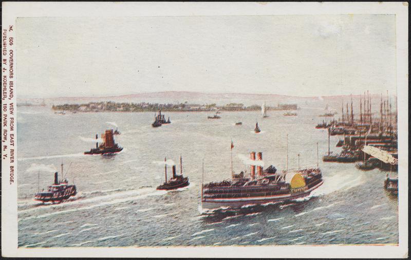 60 Wall Street. View from Cities Service tower, looking south toward New York Harbor and Governor's Island