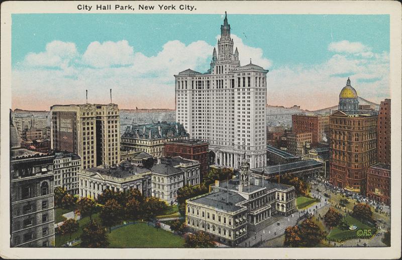 Municipal Building, Newspaper Row and City Hall Park, New York.