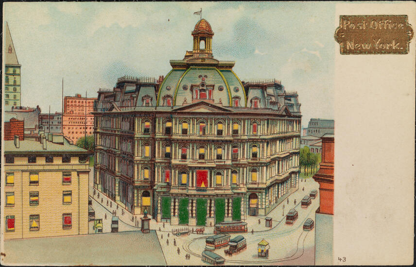 New York Post Office. Statue of Nathan Hale, City Hall Park.