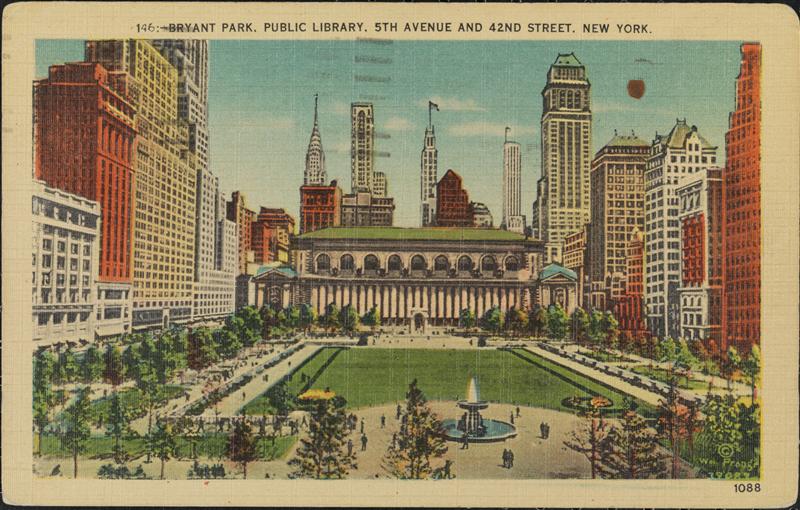 Bryant Park - Public Library, 5th Avenue and 42nd St., N. Y.