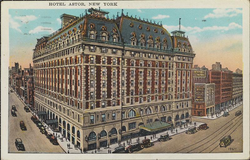 Ladies and Gentlemen's Restaurant. Hotel Astor, New York.