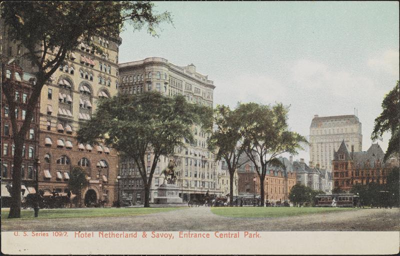 Central Park, showing Hotels Netherland and Savoy, New York.