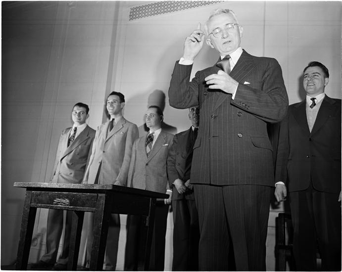 Dale Carnegie [Dale Carnegie teaching a public speaking class.]