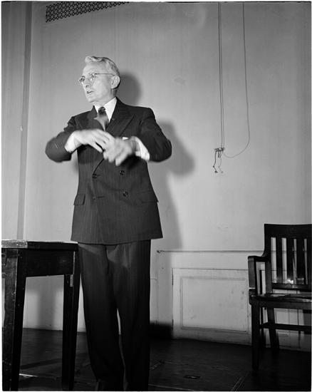 Dale Carnegie [Dale Carnegie teaching a public speaking class.]