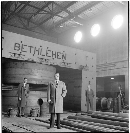 Columbia University [Three men in an industrial site.]