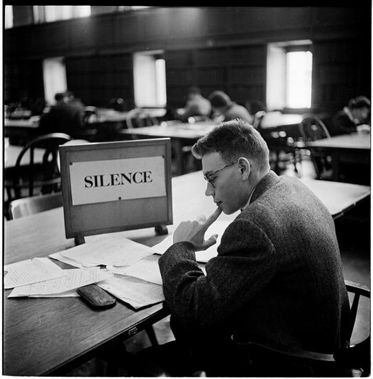 Columbia University [Student in the library.]