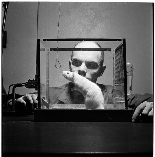 Columbia University [David Anderson, Columbia psychology lecturer, experiments with a rat to teach it to pull a chain and get food.]