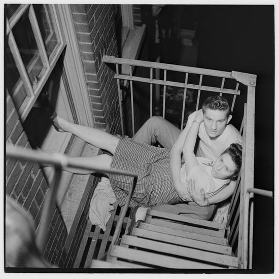 Park Benches - Love is Everywhere [Couple flirting on a fire escape.]