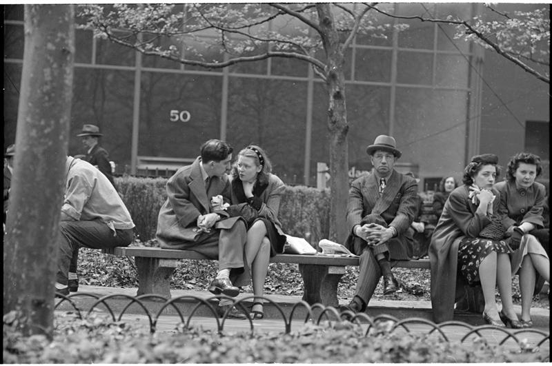 Park Benches - Love is Everywhere [Couple flirting on a park bench.]