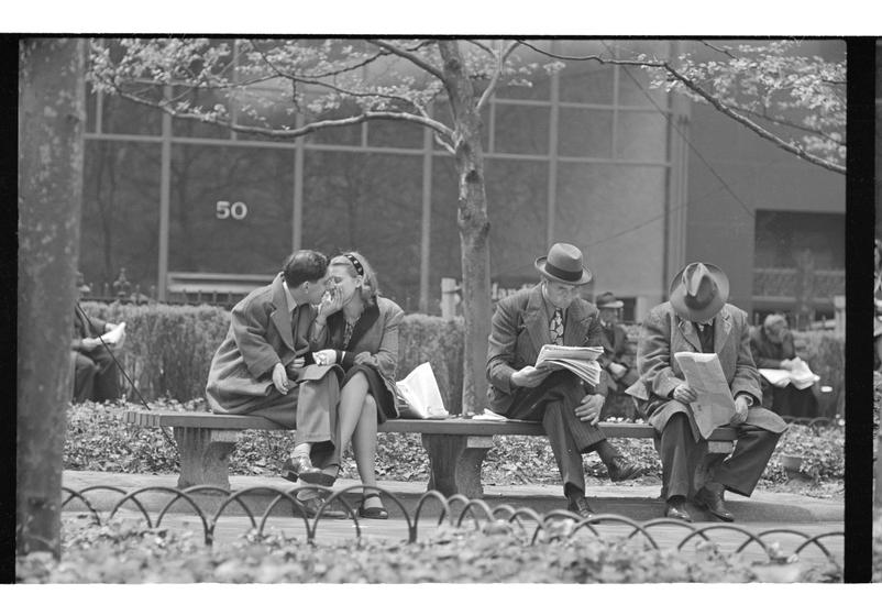 Park Benches - Love is Everywhere [Couple flirting on a park bench.]