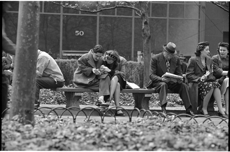 Park Benches - Love is Everywhere [Couple flirting on a park bench.]