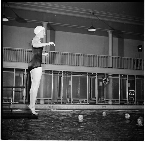 Columbia University [Ed Kennedy, swimming coach, training students.]