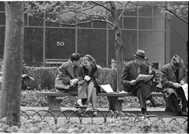 Park Benches - Love is Everywhere [Couple flirting on a park bench.]