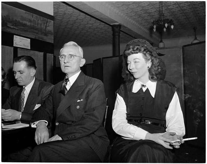 Dale Carnegie [Mrs. Dale Carnegie watches her husband criticize student speakers.]