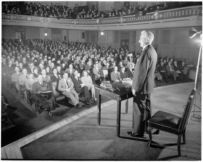Dale Carnegie [Dale Carnegie teaching a public speaking class.]