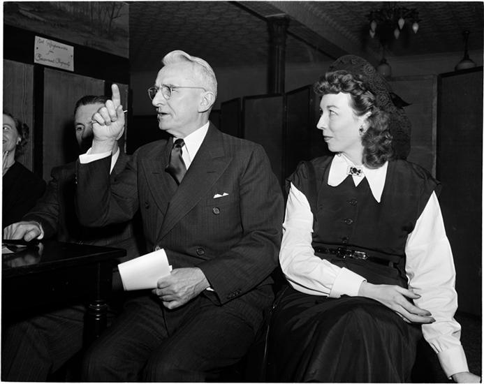 Dale Carnegie [Mrs. Dale Carnegie watches her husband criticize students.]