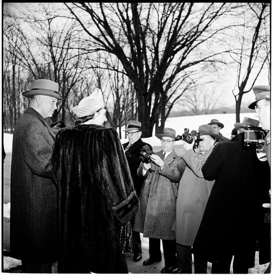 Columbia University [Dwight and Mamie Eisenhower with a group of people.]